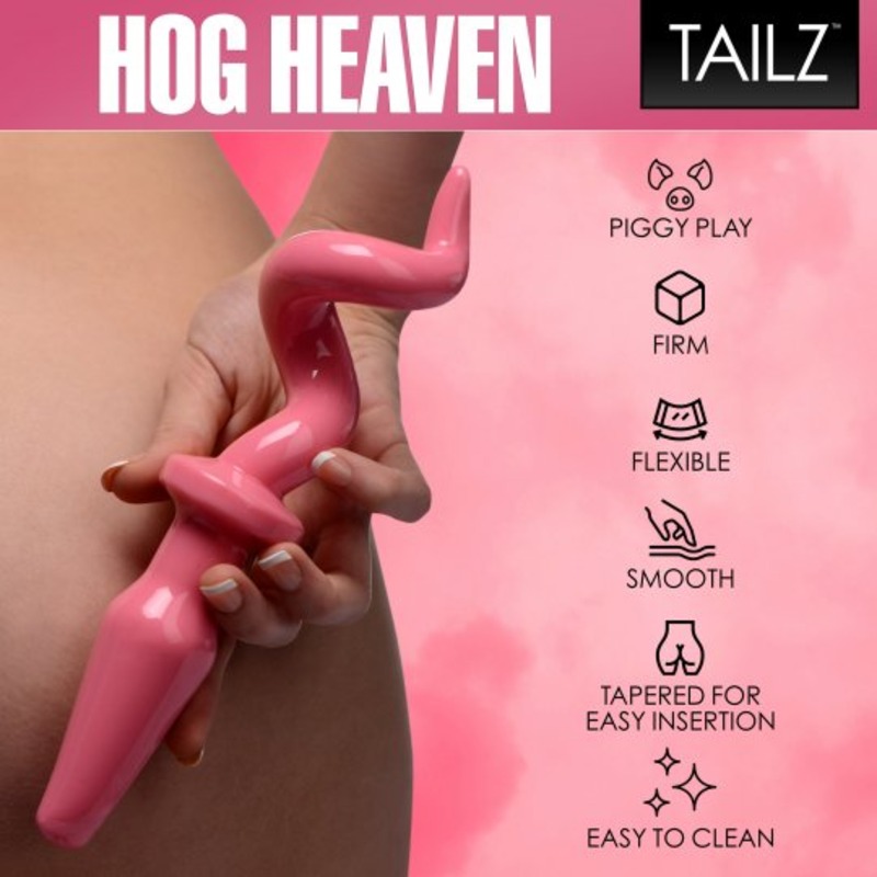 Send them to hog heaven with this sexy pig tail anal plug. This spiraled butt plug is perfect for stuffing up your little swine, and is topped with a curly tail. The bubblegum pink rubber is nice and firm, and is shaped so it will stay where it is put. The slick material is easy to clean and slides neatly in place, making it the perfect addition to your nasty little pig.